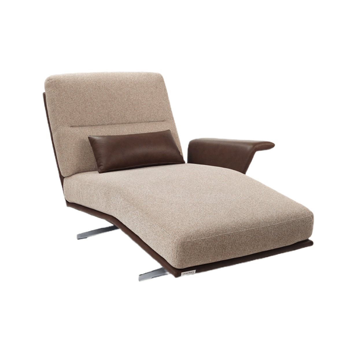 Appréciez l’alliance parfaite du design contemporain et du confort avec la chaise longue MARU. Conçue pour les amateurs de détente raffinée, cette pièce au style épuré séduit par son esthétique sophistiquée et sa conception ergonomique. Fabriquée en tissu texturé pour apporter une touche de douceur et de chaleur, et en cuir pour assurer un contraste élégant et luxueux. Reposant sur des pieds en inox, la chaise longue MARU offre une stabilité robuste tout en conservant une légèreté visuelle. Parfaite pour sublimer un salon, un espace de lecture ou une suite parentale