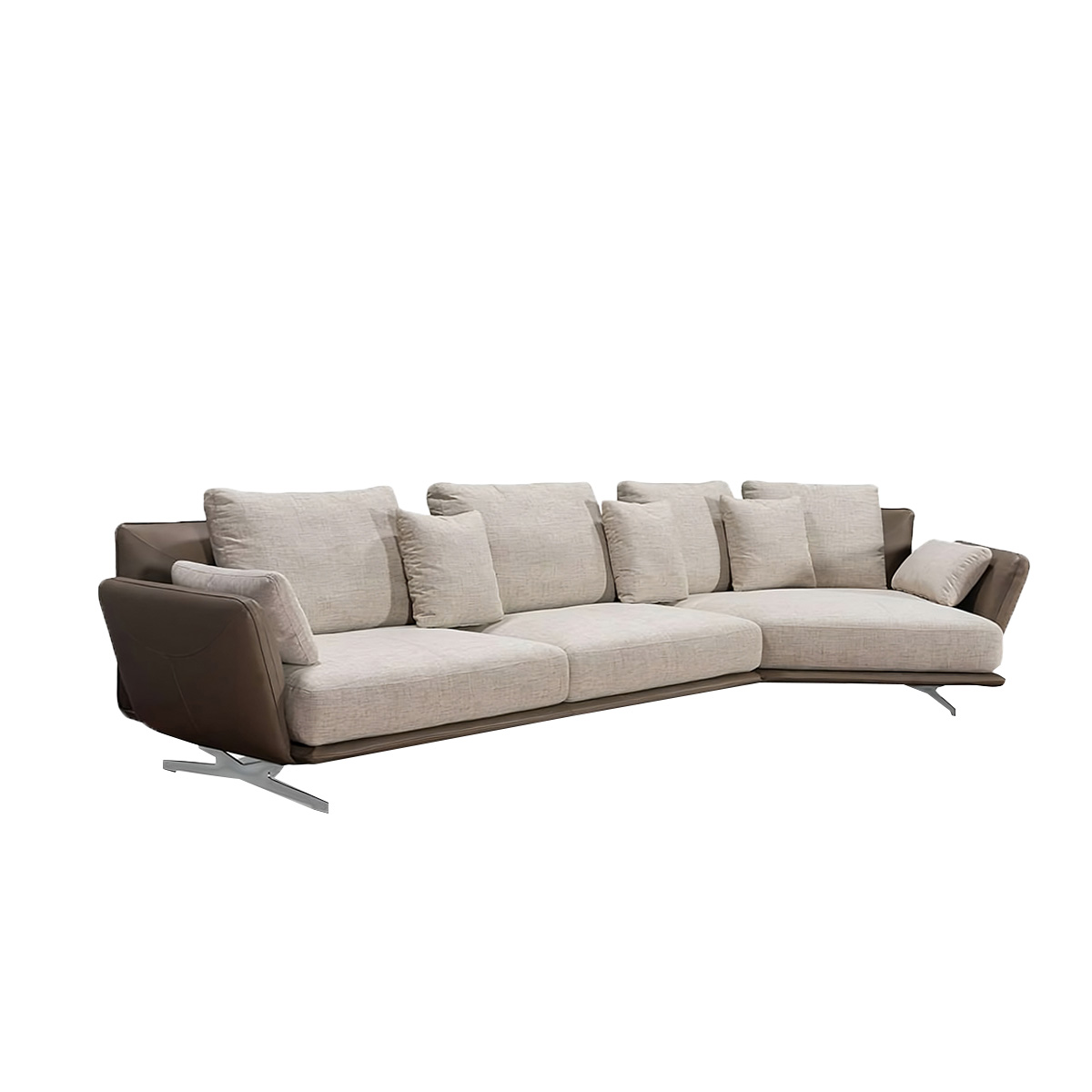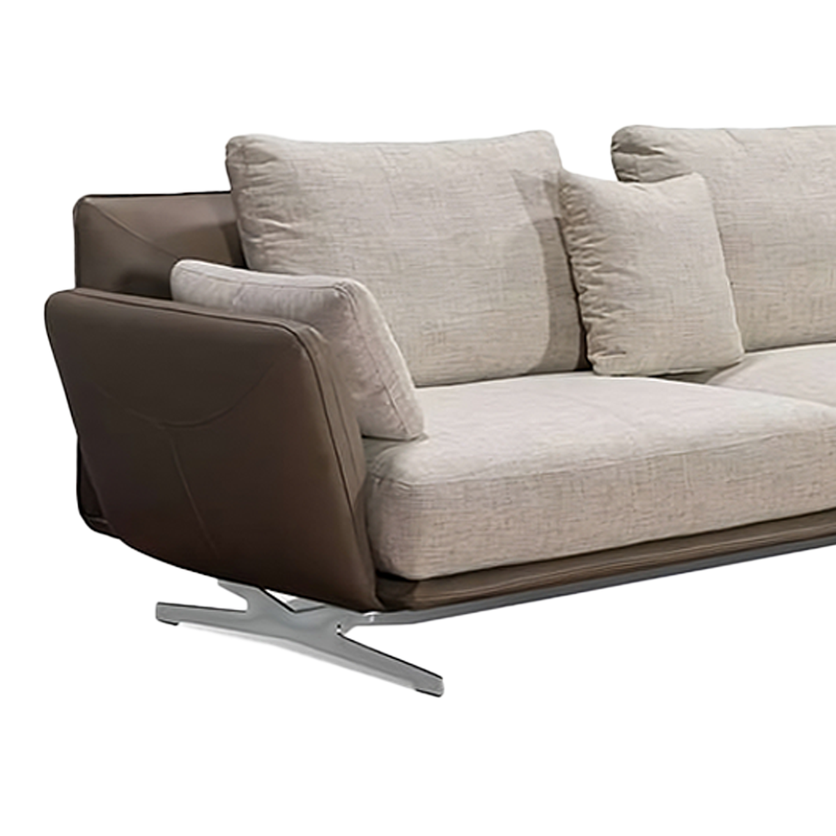 Le salon d’angle Twins illustre un design modulable avec une fusion parfaite de luxe et de confort. Le mélange de Matériaux prmium et de cuir pleine fleur offre une touche luxueuse et durable, le tissu ajoute de la chaleur et du confort.